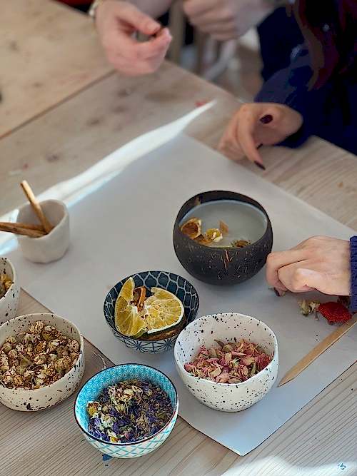 Önceden hiçbir tecrübe veya deneyime gerek olmadan eğitmen eşliğinde kendi mumlarınızı yapabileceksiniz. Atölye süresince mum yapım tekniklerini , koku ve esans kullanımını öğreneceksiniz.