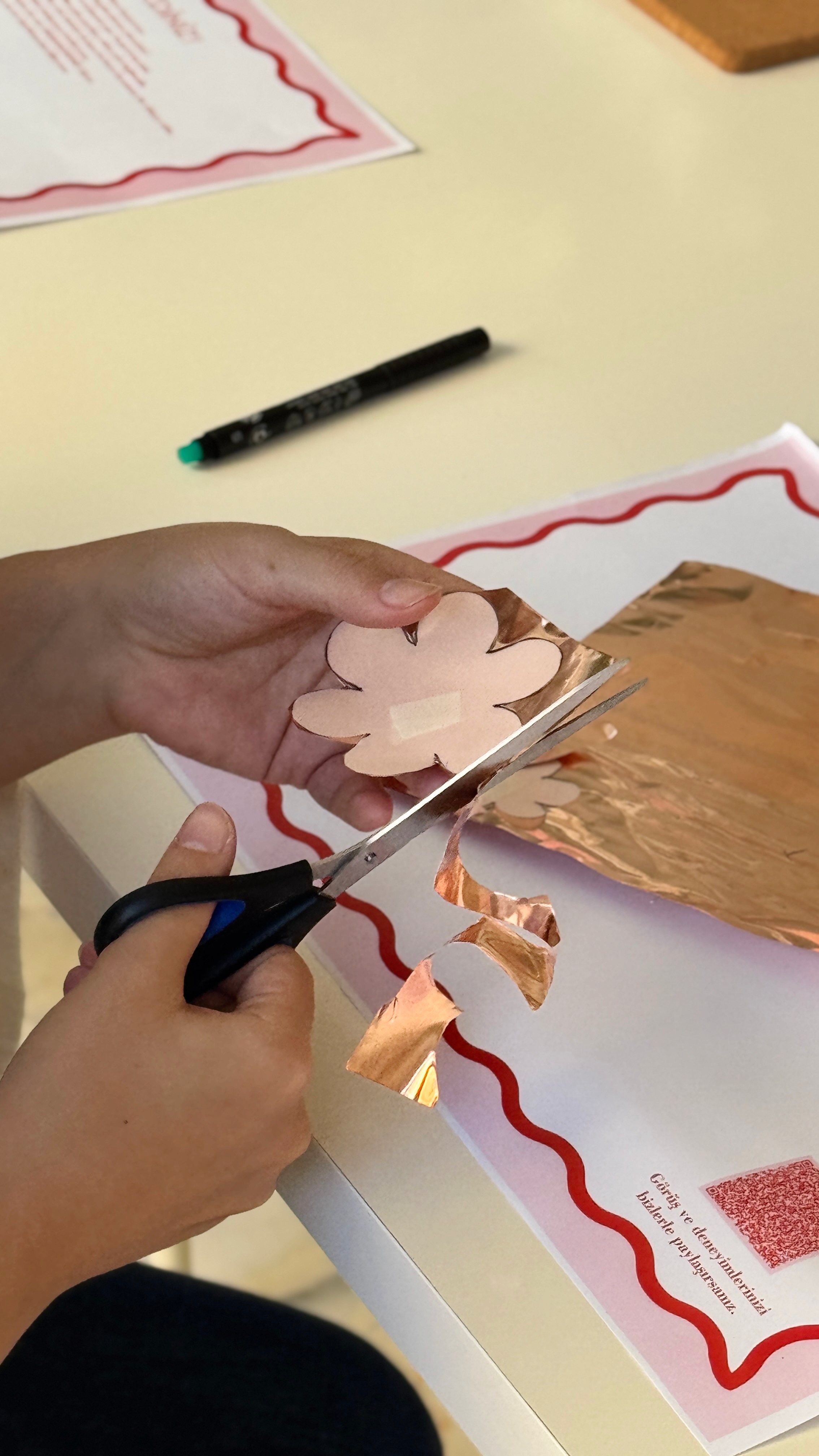 Hayal edin: elinizde parlayan bir bakır levha var. Soğuk ve düz başlayan bu metal, sizin dokunuşlarınızla kıvrılıyor, şekilleniyor ve adım adım bir çiçeğe dönüşüyor. Eğitmenimizin rehberliğinde bakır levhaları kesip şekillendiriyor, tellerle birleştirerek kendi bakır çiçeklerinizi tasarlıyorsunuz.