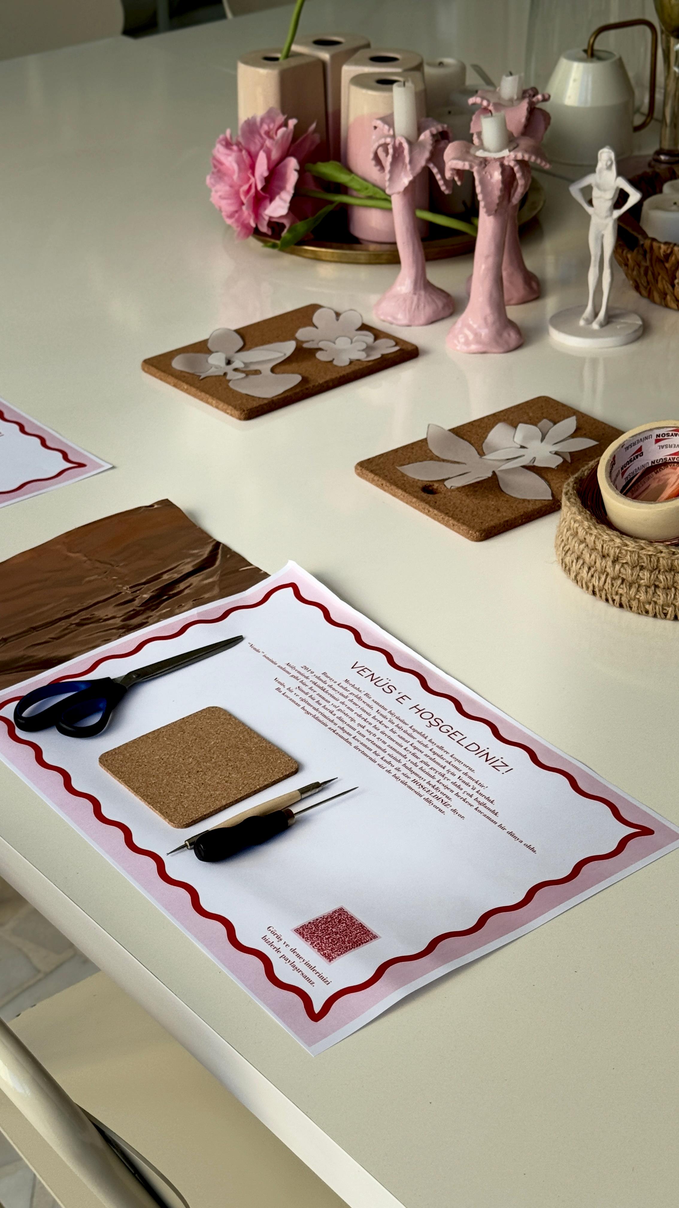 Atölye için gerekli tüm malzemeleri ve hoş sohbetimize eşlik edecek kahvemizi sizler için biz hazırlıyoruz. Sizlerden istediğimiz tek şey bol kahkaha ile gelmeniz!