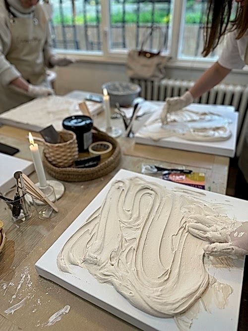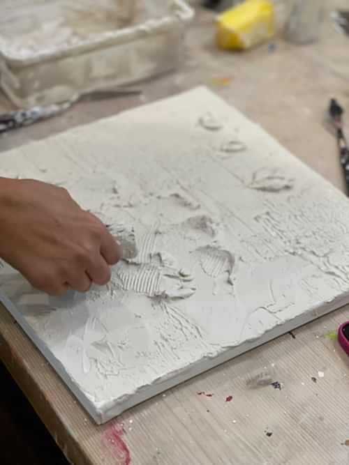Workshop boyunca önce kullanacağımız malzemeleri, karışımları tanıyacak ve mini denemeler yapacağız. Denemeler sonrasında tuvallerimiz üzerinde dilediğimiz formlarda kendi tasarımımızı oluşturacağız .