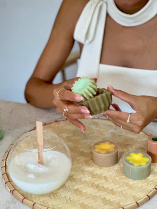 Önceden hiçbir tecrübe veya deneyime gerek olmadan eğitmen eşliğinde kendi mumlarınızı yapabileceksiniz. Atölye süresince mum yapım tekniklerini , koku ve esans kullanımını öğreneceksiniz. Farklı boyut ve renklerde çiçek mumlar yapacak , oval cam fanus içerisinde kompozisyonunuzu oluşturacak ve gün sonunda sukulent mumlarınızın tasarımını kendiniz oluşturacaksınız. Gün sonunda yaptığınız mumlar tabi ki sizlerin oluyor!